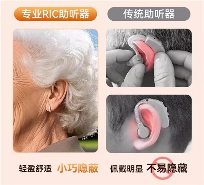 不同类型助听器的适配场景的差异,直接决定老人使用体验,需结合听损程度、身体状况精准选择,无关国产与进口。耳背式(RIC)体积小巧、佩戴稳固,支持多通道精细调节,可覆盖轻度-重度听损(25-80dBHL),适配大多数60岁以上老人,兼顾清晰听感与佩戴舒适度,日常使用便捷,是目前老人群体适配性最优的类型。