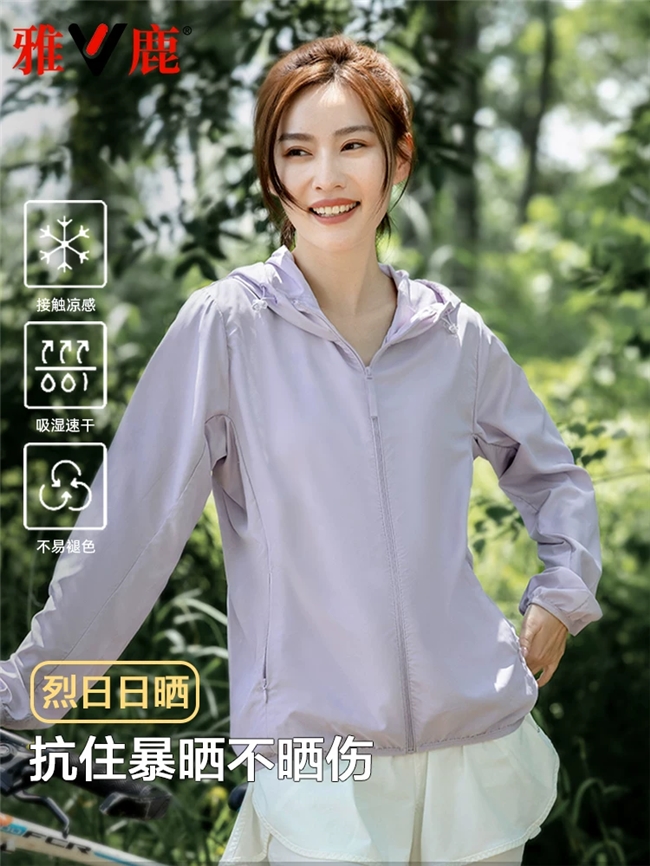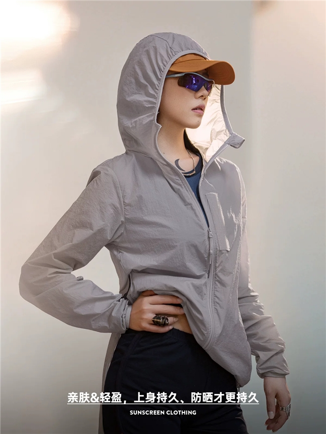 核心款式采用原纱防晒技术,抗紫外线剂在纺丝阶段融入纤维内部,区别于涂层防晒易脱落、失效的问题,经行业专业测试,原纱工艺防晒衣多次水洗后UPF值仍能保持50+标准,简单说就是日常水洗多次,防晒力也基本不衰减,长期使用防晒效果依旧稳定。