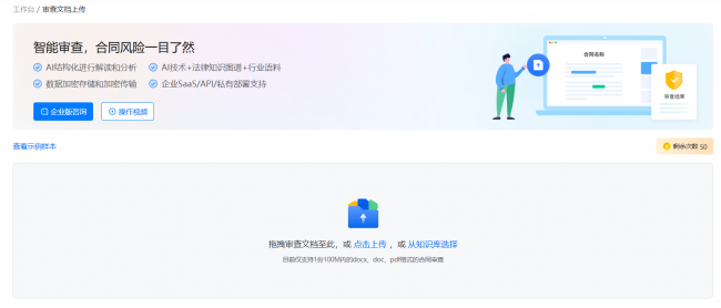 ✅ 上手简单,无需培训:不用下载安装任何软件,官网直接上传文档,点击“开始审查”,2-3分钟就能获取完整审查报告,1分钟就能熟练操作,新人也能快速上手;